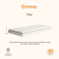 Dormir bem não deveria ser complicado. Por isso é que criamos o colchão Emma One. Para te oferecer tudo o que precisas para sonhar, sem complicações nem distrações. Desfruta do conforto clássico da Emma, agora ao melhor preço! O Emma One combina as nossas 3 camadas de espuma na sua altura de 18 cm, para te oferecer um suporte firme e confortável para o teu descanso. Adapta-se ao teu corpo, e à tua carteira!