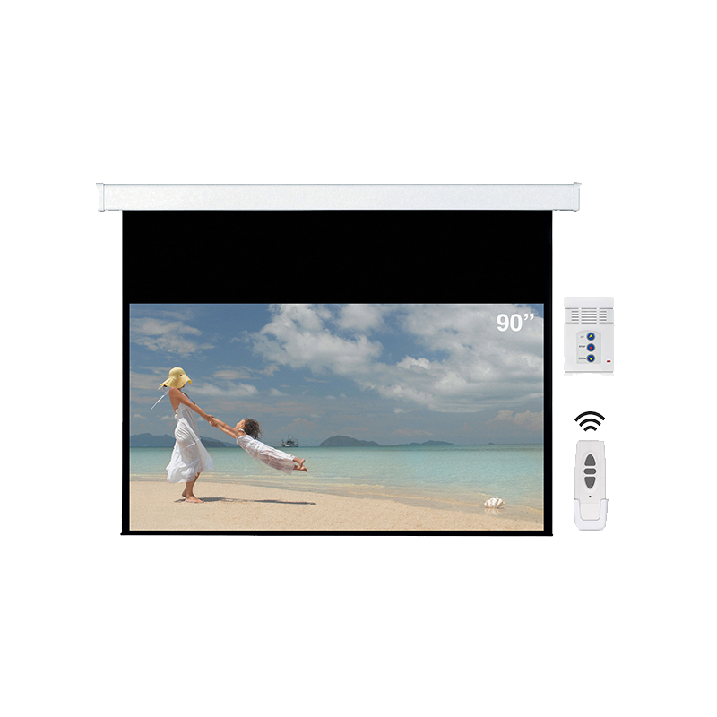 Ecran de projeção 90 Relação: 16:9 Possibilidade de fixação à parede e ao teto Blackout (Costas Pretas) 4 black borders (moldura preta) Tela Matte White Travamento automático Comutador de parede e comando via rádio Motor tubular silencioso 220V Dimensão Imagem (LxA): 2000X1120mm Dimensão tela (LXA): 2080X1440mm DROP: 4cm Top DROP: 30cm
