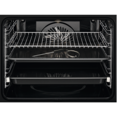 Funções eletrónicas: 3 ciclos de Pirólise, 45 programas de Cozedura Assistida, Sinal acústico, Alarme / som de erro, Desconexão de segurança automática, Ajuste de volume de sinal acústico, Bloqueio para crianças (no modo desligado), Lembrete de limpeza, Duração da cozedura, Tempo e fim de cozedura, Cronómetro, Início diferido, Modo demonstração com código, Intensidade luminosa regulável (ON), Sistema de abertura de porta, Regulação eletrónica da temperatura, Bloqueio eletrónico da porta, Aquecimento rápido selecionável, Sonda térmica, Sonda térmica com desconexão automática, Sonda térmica com indicador de temperatura interna, Sonda térmica com ajuste de fim, Bloqueo de funções (em funcionamento), Teclas sonoras de menu / desativação, Temporizador, Botão luz interior (menu + acesso direto), Indicação de temperatura real (°C), Indicador de aquecimento residual, Informação de serviço, Proposta de temperatura, Hora do dia