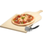 Inclui uma pedra, uma tábua de madeira e um cortador de pizza