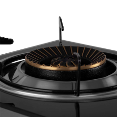 Corpo Inox Superfície de vidro temperado negro Acendimento piezoelétrico Combustível: Gás butano e gás propano Tipo de gás G-30: Pressão 28-30 mbar Tipo de gás G-31: Pressão 37mbar Categoria I3+ Base antiderrapante 1 queimador de tripla coroa Sistema de seggurança FFD (Flame Fail Device): anula a saída de gás no caso da chama se apagar involuntáriamente Fácil de limpar Queimador: 4,3kW Consumo total de gás: 312.9 g/h Dimensões: 30.6 x 15 x 38,3cm Para uso interno e externo