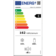 Capacidade útil: Refrigerador: 267,9 l / Congelador: 103 l