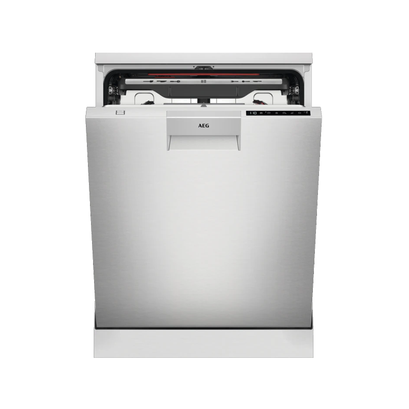 Cesto superior: 2 prateleiras rebatíveis, 2 prateleiras rebatíveis para copos, 2 Soft Splikes, 6 Soft grips para copos de vinho, Suporte rebatível para chávenas, Pega sem inox AEG, Pegas laterais