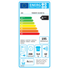 Consumo de energia (programa secagem algodão para arrumar): só 0 (0) kWh após secagem à velocidade de centrifugação de 1400 (1000) rpm