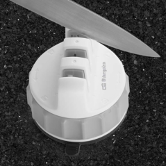 Afiador de facas de 3 etapas: - Diamond: Repara e endireita - Carboneto de tungstênio: Afiar grosso - Cerâmica: Afiação fina Afia e retifica lâminas lisas Base com ventosa que promorciona grande estabilidade Design compacto para armazenar em qualquer lugar
