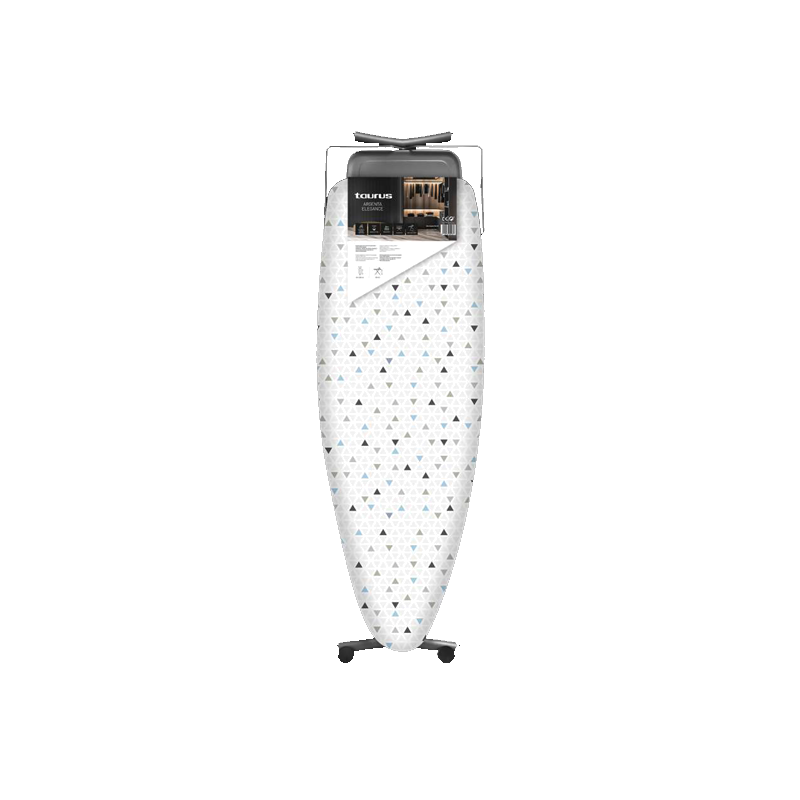 Suporte grande para centros de passar roupa, deslizando para ocupar menos espaço Capa 100% algodão, enchimento de espuma de 8mm Plataforma robusta de resistência máxima Regulador de altura até 98cm Desenho específico de pés para passar a ferro sentado Rodas para fácil transporte Peso: 7.3kg